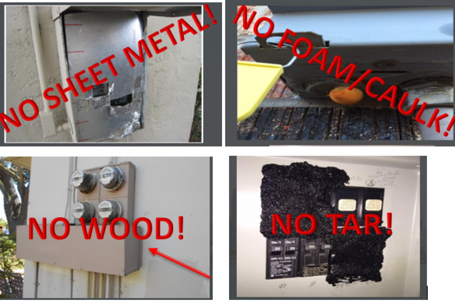 3. Foreign materials (caulk, foam, screws) in the panel are a defect. The only acceptable materials allowed are UL rated such as blanks for breaker ports.